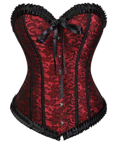 SZIVYSHI underbyst korsett – korsetter för kvinnor – midjecincher formare benad satin snörning vintage bustier topp, svart, X-Large, Röd, X-Small