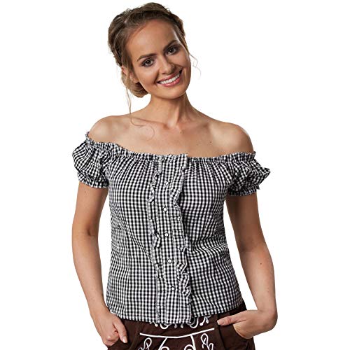 dressforfun 900621 Traditionell tysk blus för kvinnor, kortärmad, sidolungrar, svart och vit – olika storlekar (L| Nr. 303122)