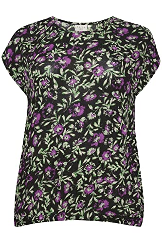 Kaffe Curve Plus-size blus kortärmad rund hals lös passform, Svart/grön/lila blomma