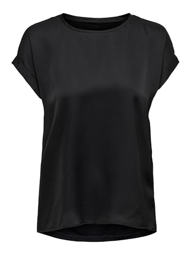 ONLY Damer enfärgad kortärmad blus basic rund hals blusar T-shirt blus topp ONLVIC, Svart 1, M