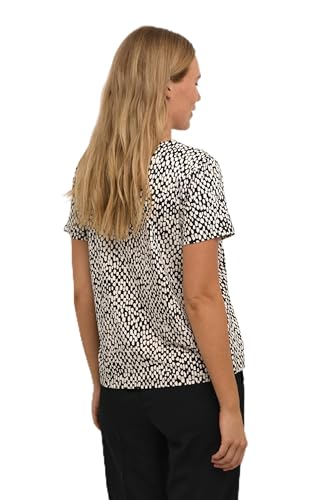 KAFFE Kvinnors blus kortärmad lös passform samlad fåll rund hals tryckt dam, Svart djupa/antikt vitt tryck, 34