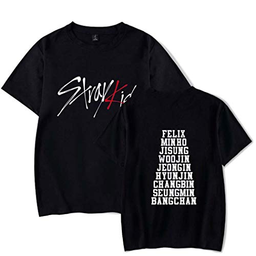 EAPHROWER Unisex T-shirts Kpop Stray barn sommar kortärmad bomull ledig lös blus toppar för män kvinnor, Svart A, L