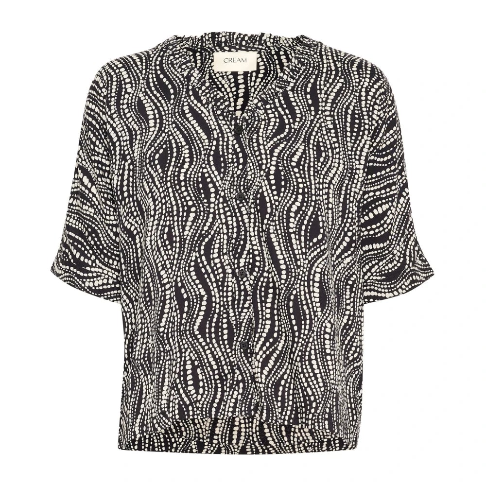 Cream, Blusar & Skjortor , Dam, S, Svart Wavy Dots kortärmad blus