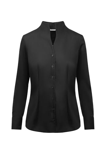 Sidenklistermärken damer blus – skjortblus – strykfri – slim fit – kortärmad – uni – 100% bomull, svart, 42