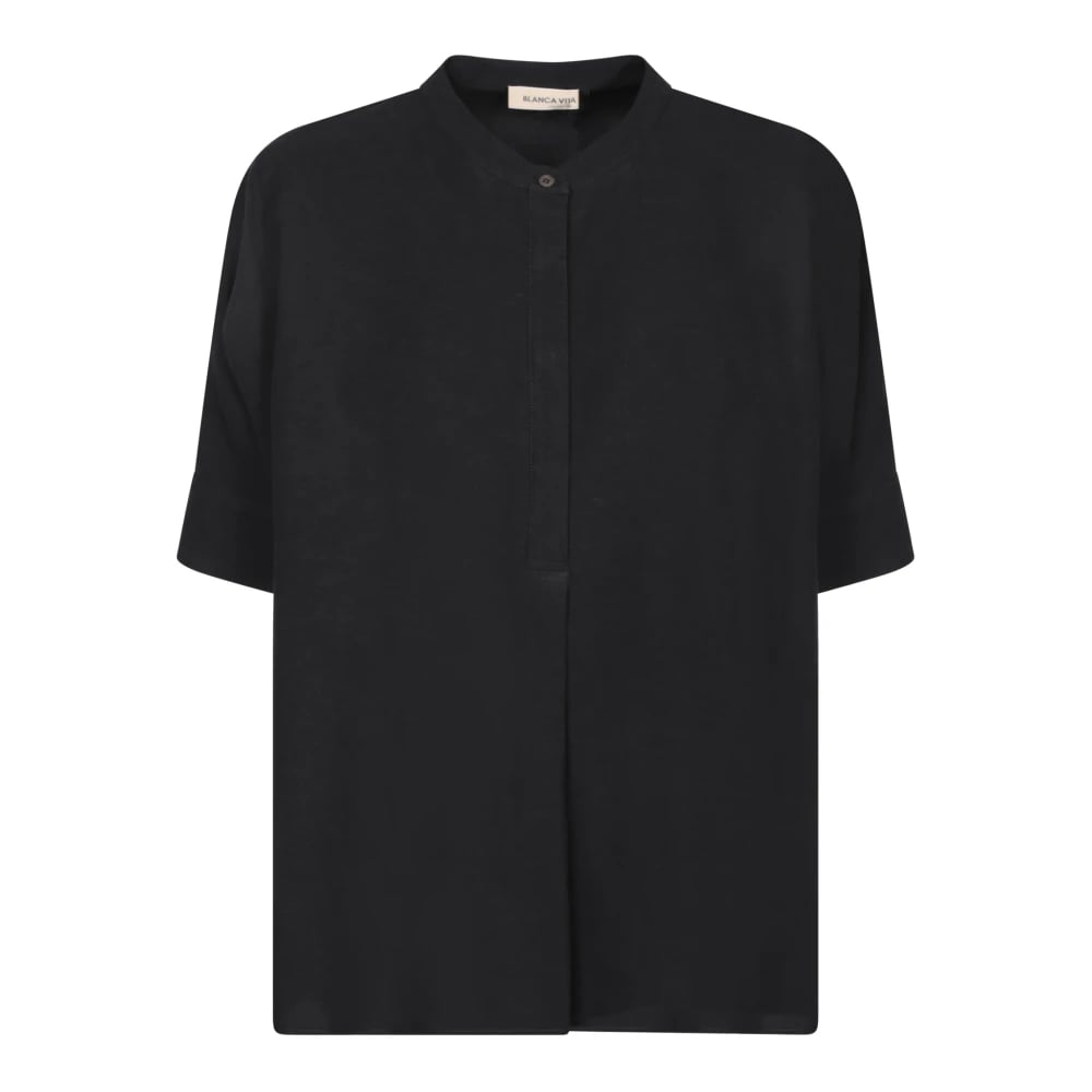 Blanca Vita, Blusar & Skjortor , Dam, M, Linne, Svart kortärmad blus med ståkrage