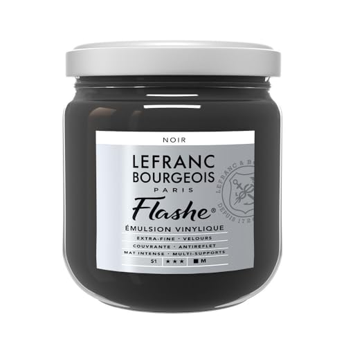 Lefranc Bourgeois 300477 Flashe akrylfärg och vinylfärg, högpigmenterad, elastisk, ljusäkta, åldringsbeständig, matt, för inomhus- och utomhusbruk, 400 ml kruka – svart