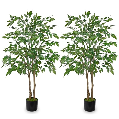 Arborus 2 st stora konstgjorda fikusväxter 120 cm höga falska fikusväxter inomhus fuskträd med svart kruka realistiska konstgjorda husväxter för vardagsrum sovrum balkong hörn kontorsdekor