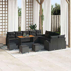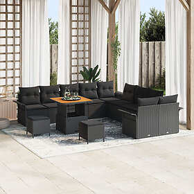 vidaXL Trädgårdsoffset med kudde 13 st Svart 110 x 55 x 71 cm