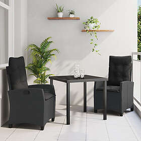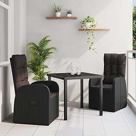 vidaXL Trädgårdsmöbelset med Kudde Svart Konstrotting 3 Delar 3380302