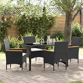 vidaXL Trädgårdsmöbelset med kudde Svart Konstrotting 5 Pieces 3526675