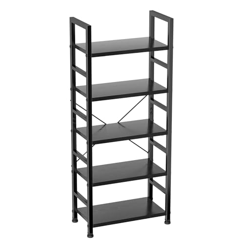 Sweetcrispy Bokhylla i 5 nivåer, stående hylla med stålram, lagerhylla i industriell stil, hyllor i vardagsrum kök, smal hylla för kontor, sovrum, arbetsrum, modern svart, 60 x 31 x 160 cm