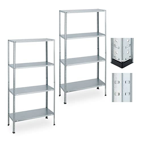 Relaxdays Hylla för tung last set om 2, HBT: 147,5 x 75,5 x 30,5 cm, 160 kg, galvaniserat stål, lagerhylla för källare, silver