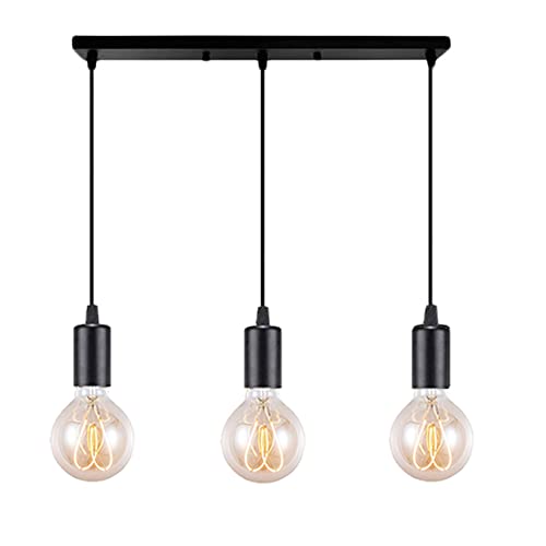 Hängande lampa i järn, pendellampa, svart taklampa med 3 lampor, LED-ljuskrona, modern hänglampa med E27, lamphållare i metall, vintage, retro för kök, matsal, vardagsrum, sovrum (C)