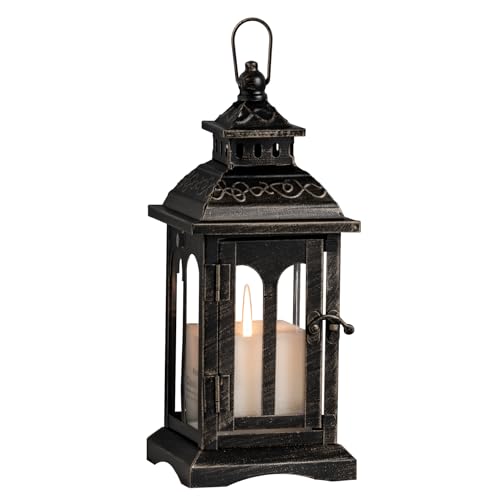 DEKORKEY Ljus lykta dekorativ, medium hängande heminredning, vintage metall dekorativa ljuslyktor för utomhus uteplats bröllopsfest svart med kopparborste