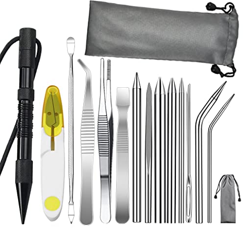 WANGCL 14 st paracordnålsset paracord FID-tillbehör med Marlin Spike och förlängningsmutter rostfritt stål snörningsnålar utjämningsverktyg knut (svart)