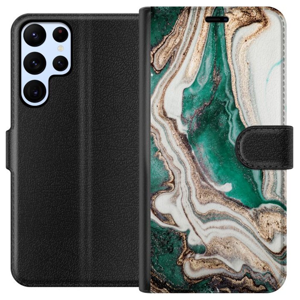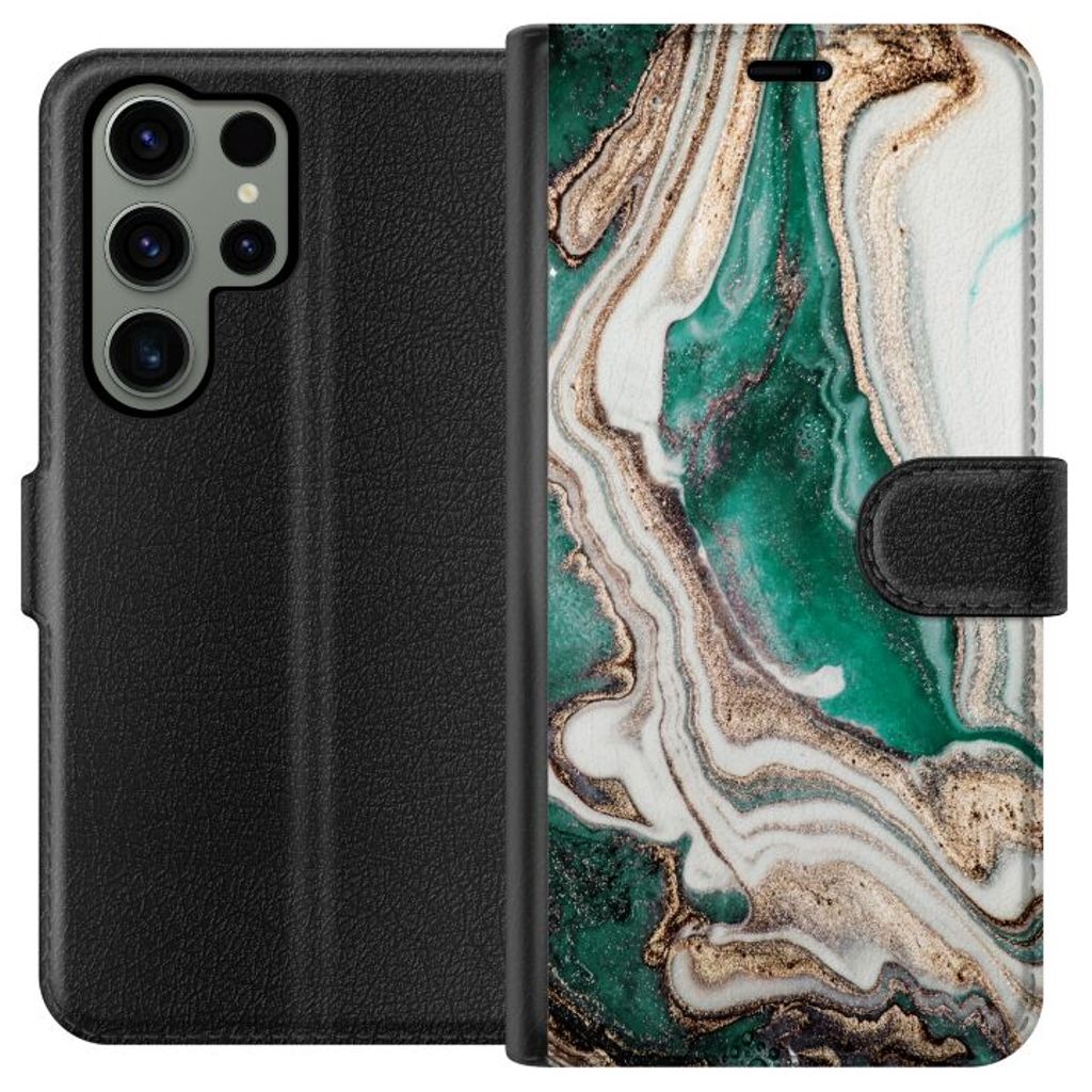Samsung Galaxy S23 Ultra Svart Plånboksfodral Grön / Guld marmor
