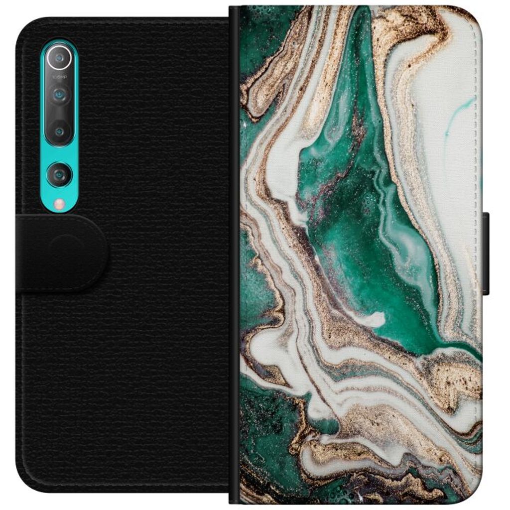 Xiaomi Mi 10 5G Svart Plånboksfodral Grön / Guld marmor