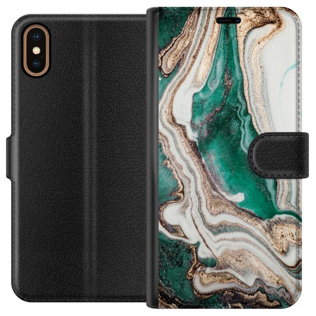 Apple iPhone XS Svart Plånboksfodral Grön / Guld marmor
