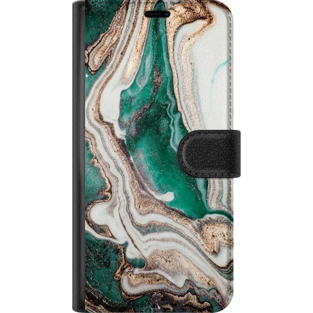 Apple iPhone 13 Svart Plånboksfodral Grön / Guld marmor