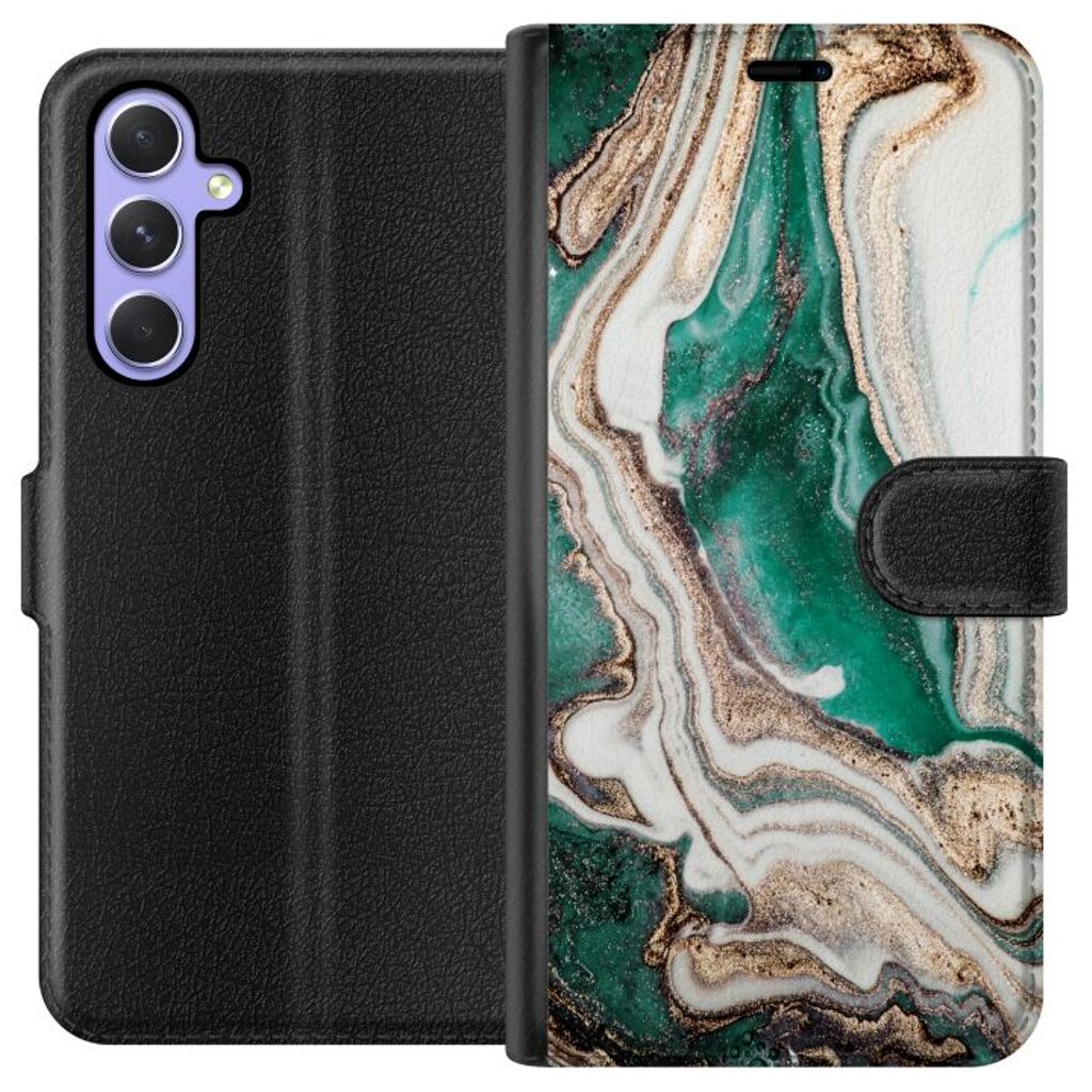 Samsung Galaxy A54 Svart Plånboksfodral Grön / Guld marmor