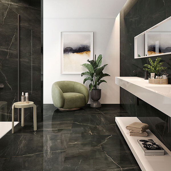 Hill Ceramic Marmor Klinker Imperiale Svart Satin 60x120 cm