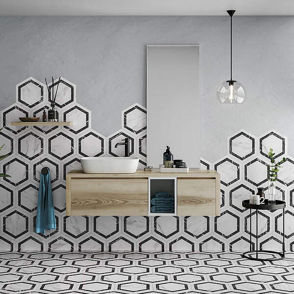 Hill Ceramic Marmor Hexagon Klinker Artis Vit-Svart-Grå Matt 15x17 cm
