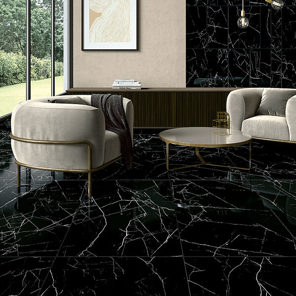 Hill Ceramic Marmor Klinker Portloren Svart Polerad 120x120 cm