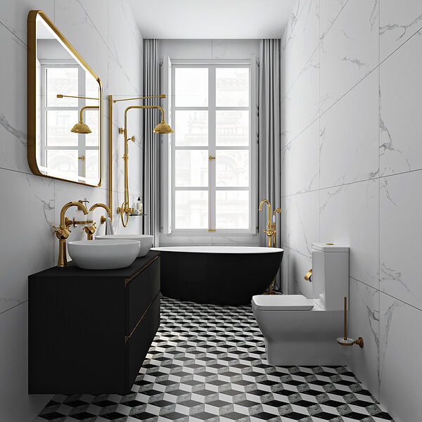 Hill Ceramic Marmor Klinker Calacata Svart 66x66 cm