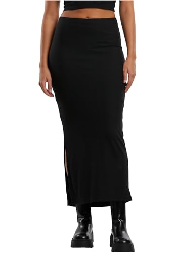 Urban Classics Rock Ladies Rib High Slit kjol, maxikjol med slits, 7/8 längd, smal passform, svart, XL
