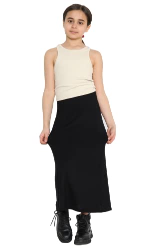 STAR FASHION Maxikjol för barn, flickor, full längd, långa, maxikjolar, skoluniform, ankellängd, pennkjol, vifta, bodycon-kjolar för barn, Svart, 7-8 År