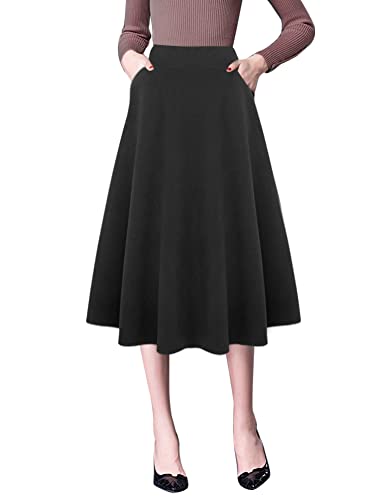 IDEALSANXUN Dam hög elastisk midja maxikjol A-linje rutig vinter varm utsvängd långa kjolar, Ren svart, M