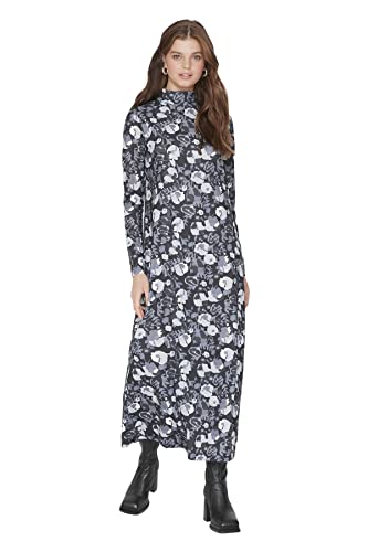 Trendyol Dam design vanlig skift hög hals stickad klänning för dam, Svart/Mink, M