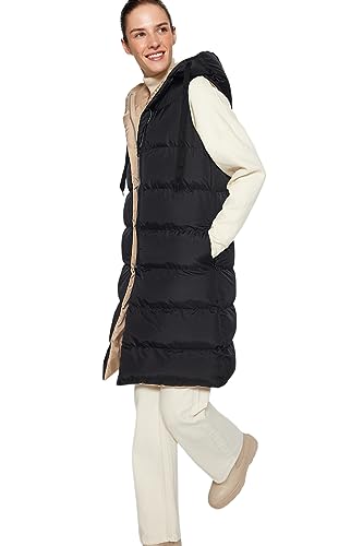 Trendyol FeMan överdimensionerad pufferhuva vävd väst, svart-mink, L, Svart-Mink, L