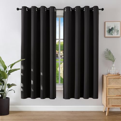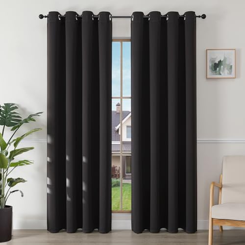 Deconovo Gardin mörkare öljetter gardiner mörkläggningsgardin vardagsrumsögelgardin, 138x132cm (höjd x bredd), svart, uppsättning med 2