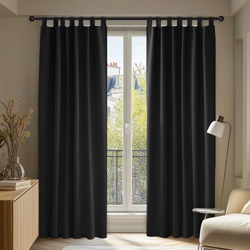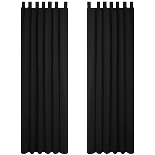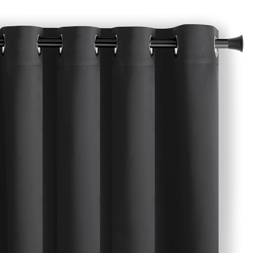 Deconovo Mörkläggningsgardin ogenomskinliga öglor för värmeisoleringsgardiner, 260x140 cm (H x B), Svart, uppsättning om 2