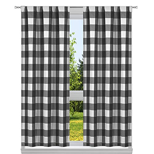 Elrene Home Fashions lantlig livsstil Grainger buffelrutigt mörkläggningsgardin, draperi för vardagsrum och sovrum med gardinstångsöppning, 132 cm x 241 cm, svart, 1 panel.