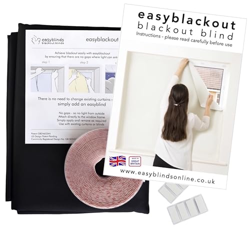 Easyblinds easyblackout mörkläggningsgardin, alla former/storlekar upp till 270 x 135 cm, SVART (andra tillgängliga), självhäftande tillbehör, patenterad design för full mörkläggning, lätt att