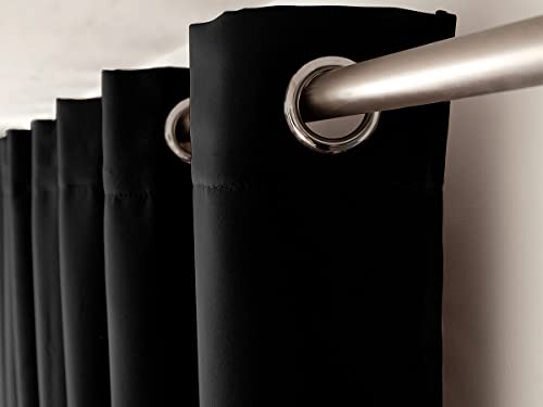 Deconovo Mörkläggningsgardin ogenomskinliga öglor för värmeisoleringsgardiner, 245x140 cm (H x B), Svart, uppsättning om 2