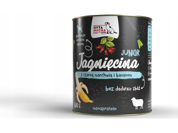 Syta Micha Junior Lamm Med Svart Morot Och Banan - Våtfoder För Hundar - 800G