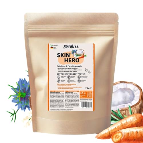 BugBell 7 kg premium torrfoder, för pälsvård och parasitförsvar, med morot, svart kumminolja, kokosolja, cistrosört och rosmarinpulver