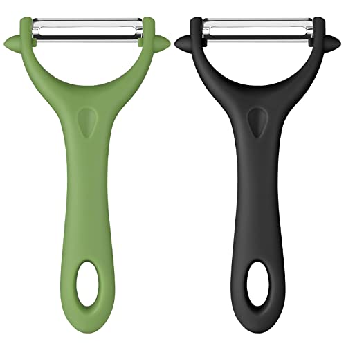 AUAUY 2 st universell tomat- och kiwiskalare, rostfritt stål, med ergonomiskt halkfritt handtag, vridbart för frukt, grönsaker, morot, aubergine, gurka (svart, grön)