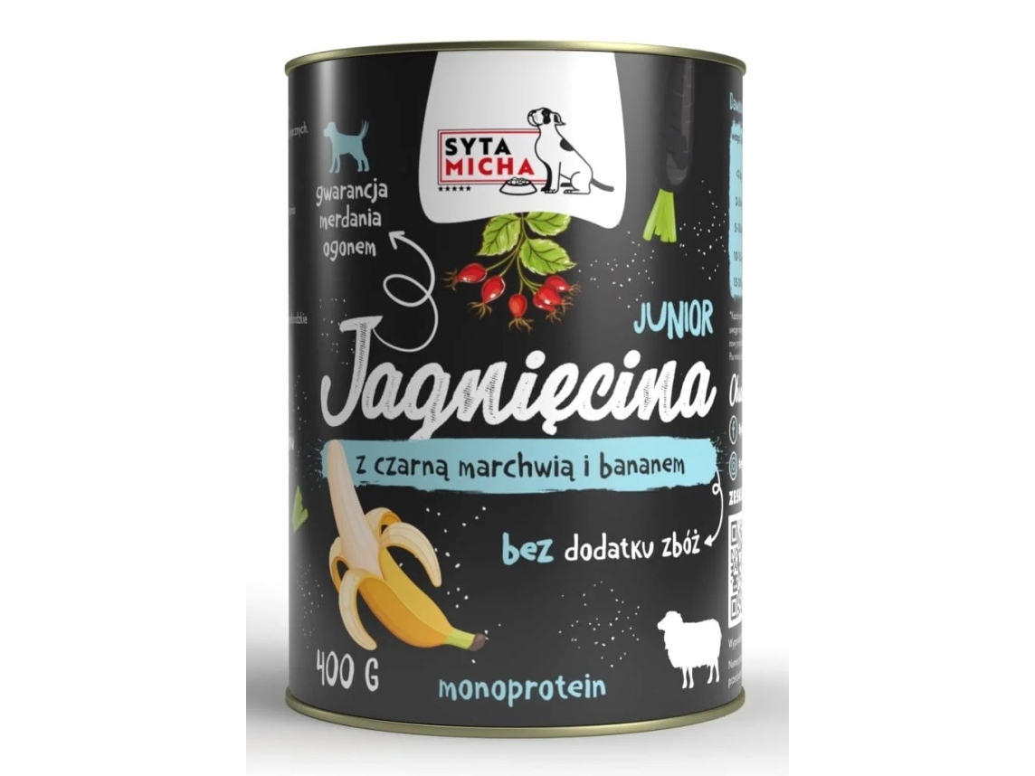 Syta Micha Junior Lamm Med Svart Morot Och Banan - Våtfoder För Hundar - 400G