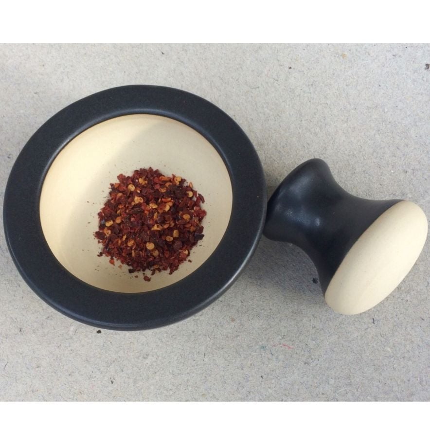 Mortel och stöt för örter och kryddor, naturlig och hållbar keramik