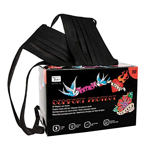 ARNOMED munskydd svart 50 enheter, kirurgiska masker Type IIR, medicinska kirurgiska masker enligt standard EN 14683, 3-lagers munskydd svart CE-certifierade, mun- och nässkydd med BFE ≥ 98%