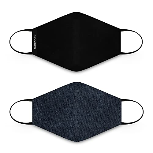 Suavinex 401325 Återanvändbara munskydd för vuxna +10 år. 3 lager. 25 tvättcykler. Tillverkad i Spanien, 2 st denim och svart, unisex