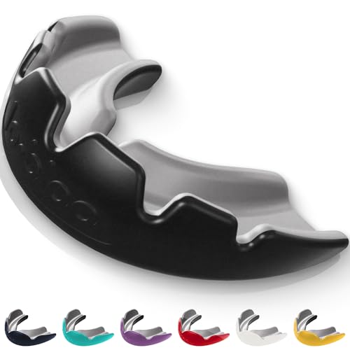 lobloo PRO-FIT patentsökt, professionellt intryckslöst munskydd med dubbla densitet för högkontaktsporter som MMA, hockey, fotboll, boxning, rugby. Stor +14 år, Svart