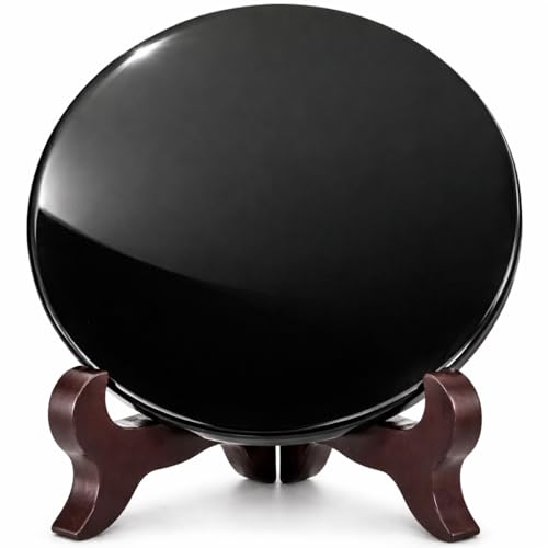 Polar Jade svart obsidian spådomare spegel (110 mm/4,3 tum med trästativ)