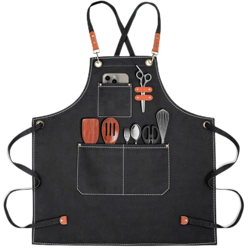 Conda 100 % bomullskanvas professionellt förkläde för målning av värde volym tom vit duk, grundad, kvalitet syrafri konstnär kanvaspaneler för målning av akryl och olja, Svart, Black Apron