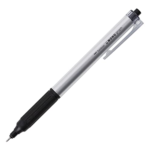 Tombow - MONO Graph Lite kulspetspenna med indragbar spets - ballpoint penna med bläck mjuk olja svart och silver kropp - kulspetspenna med 0,52 mm precision spets