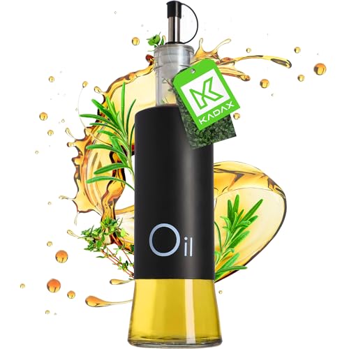 KADAX Dispenser för flytande kryddor, glasflaska med stålelement, glasdispenser för olja, vinäger, vinäger, oljebehållare, dispenser för olivolja (olja, svart)